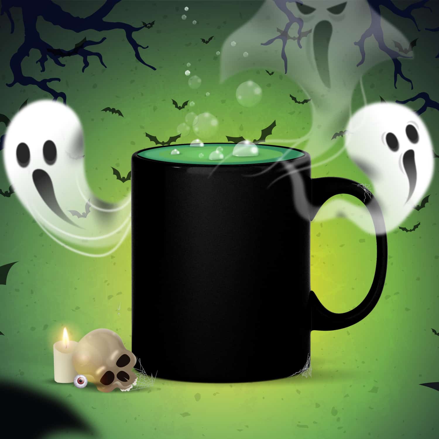 After downloading the mockups, just add your mug designs using any graphics software. Then, upload the images to your Halloween social media promotions.